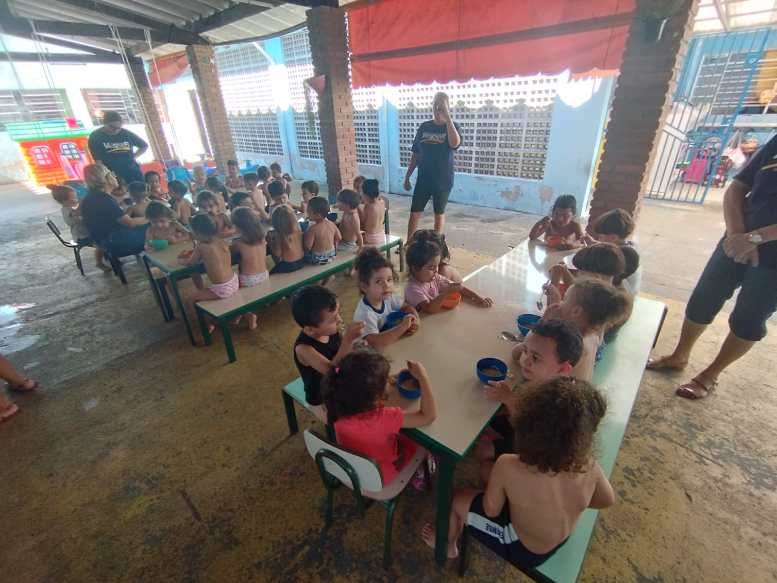 Nossas crianças se deliciando com uma sopa maravilhosa